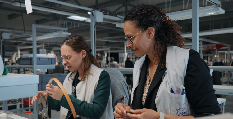 La transmission de nos savoir-faire est au cœur de notre engagement. C’est pourquoi notre école interne certifiée Qualiopi forme de nouveaux talents. Notre programme vous prépare aux métiers de la coupe, de la préparation et du montage. Aucune expérience préalable en maroquinerie n’est requise : seule votre motivation et votre appétence pour le travail manuel feront la différence.