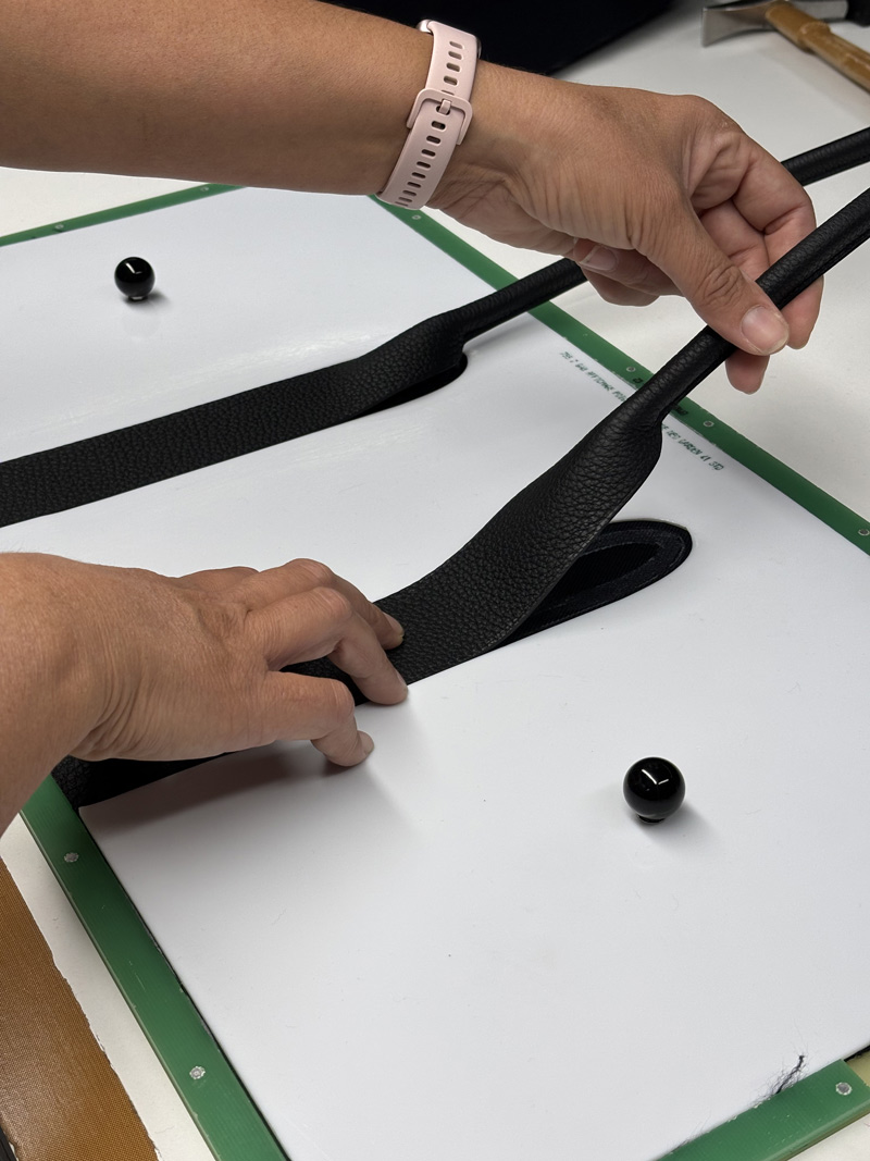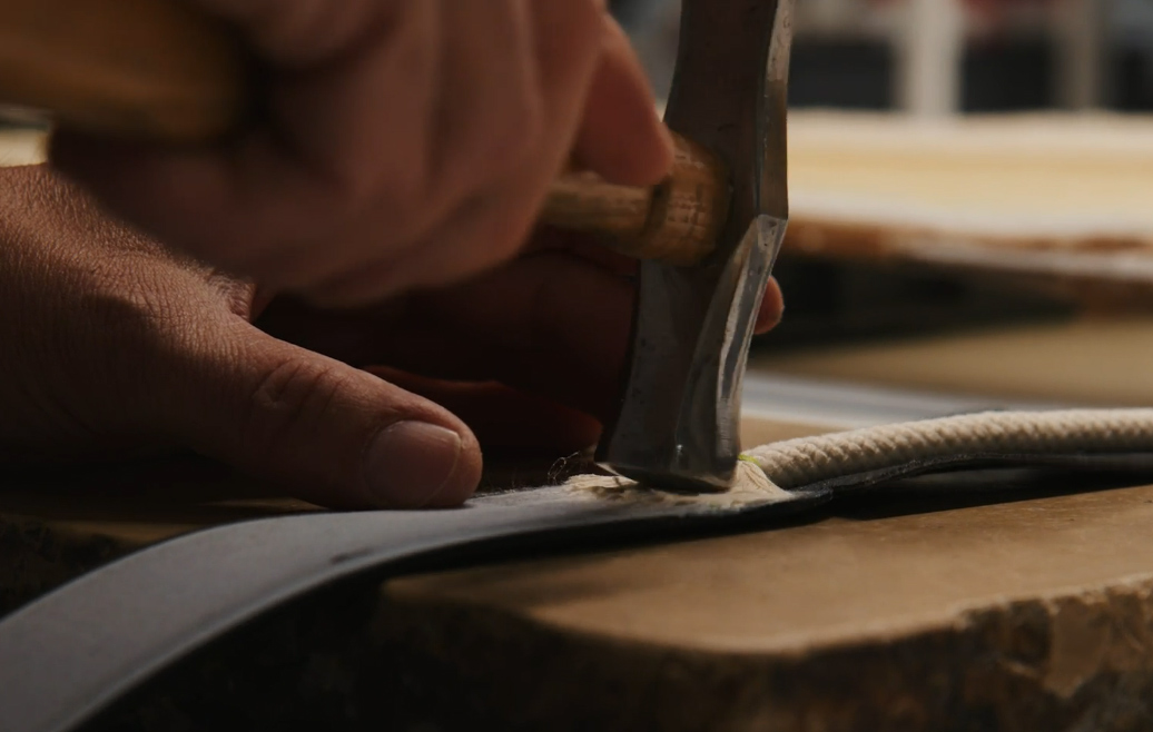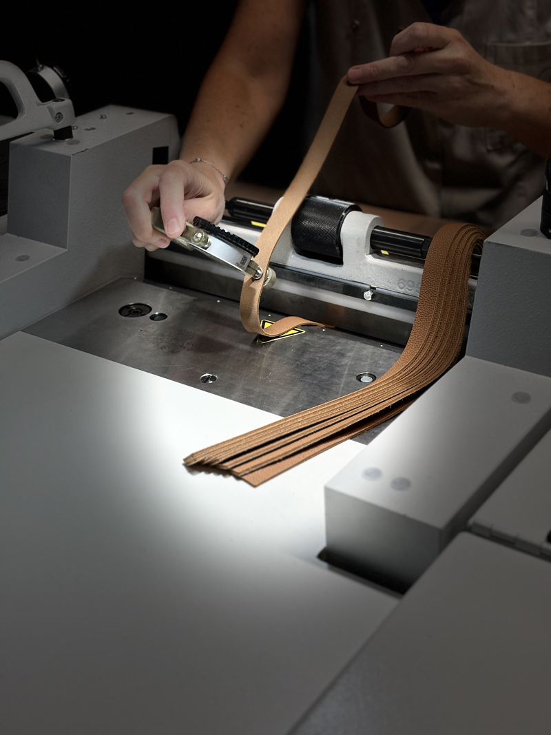Avant l’assemblage, chaque pièce de cuir est soigneusement travaillée à travers diverses opérations. Autant de gestes techniques qui préparent la matière à s’unir parfaitement. Cette étape cruciale révèle le savoir-faire de l’artisan et assure souplesse, solidité et esthétisme au futur produit.